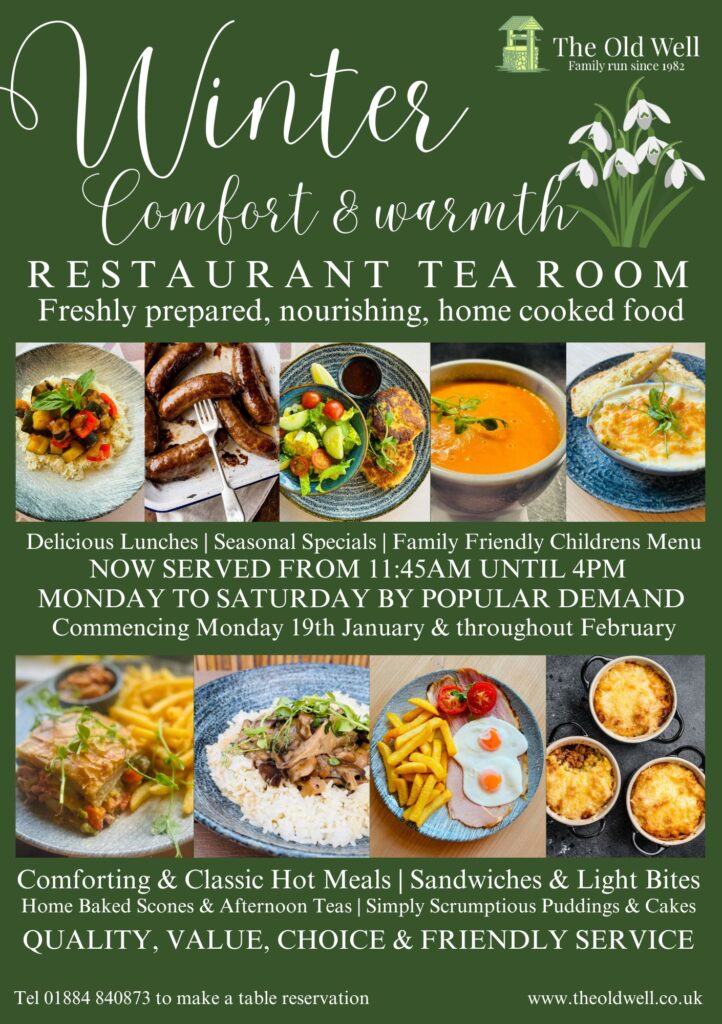 Winter Warmers – We are pleased to extend our lunch menus and hot food service hours during the colder season from Monday 19th January 2026, as outlined below.